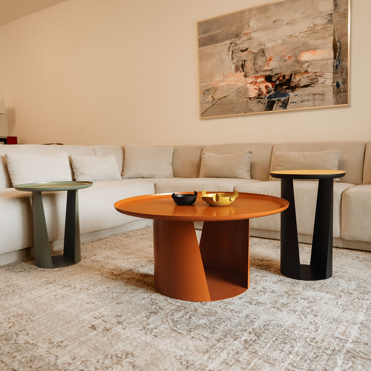 A coffee table made of unique form of metal, with a classic shape and modern look. You can pair this table in your home with the side table from the Mush family to create fantastic combinations.