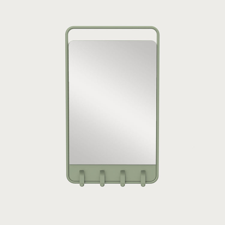 With its minimal and functional design, Pino adds both order and elegance to your entryway. Its 4 hooks are ideal for hanging scarves, bags, hats, necklaces, or your dog's leash. The mirror makes it easy to do a final check before you leave. It hangs easily on the wall.