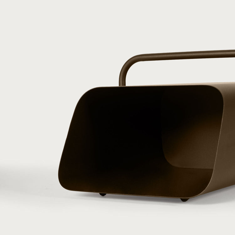 Cozy meets your firewood storage needs in a stylish and functional way. Made from metal, this basket-shaped product comes in both large and small sizes to fit any space. With a handle made from pipe, Cozy is easy to carry, and its ball feet elevate it off the ground, making cleaning easier and preventing contact with the floor.