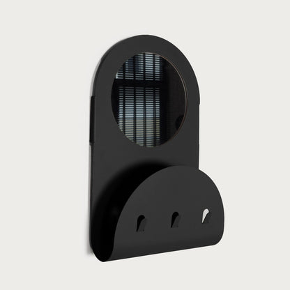 Flow is a functional wall mirror, shelf and hanger combination. Thanks to its twist details, it allows you to organize your small items such as magazines, books and keys. Flow, which has a small mirror on it, has a stylish and useful design consisting of rounded forms.