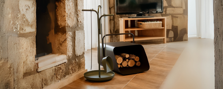 Tub fireplace accessory, one of the most complementary parts of your fireplace, helps you elegantly watch the fire with its shape made of metal pipes and graceful lines. The set, which combines functionality and aesthetics, consists of a shovel, tongs, and poker.